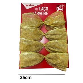 Kit Laço Telado 25cm C/4Und C/Glitter 1058026 Cromus ATENÇÃO: As cores dos produtos podem sofrer variações em função das características do monitor e do ambiente durante sua visualização.