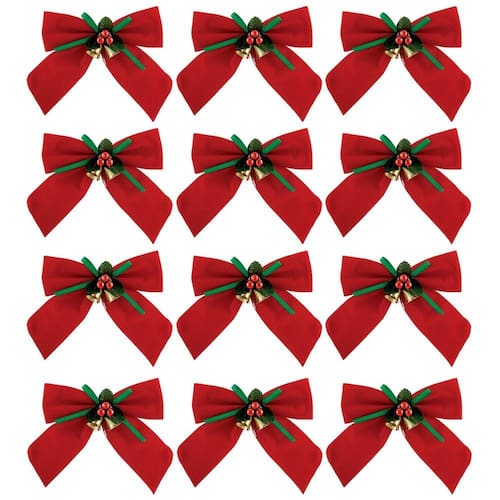 Kit Laço Vermelho Decorado Natal 11x11cm 12 Peças - Magizi