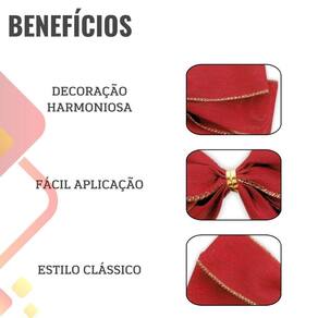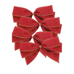 O Kit Laços Natal Cromus traz 4 unidades de laços confeccionados em veludo vermelho e dourado, perfeitos para adicionar um toque especial à sua decoração natalina. Com 25cm de comprimento, esses laços são ideais para enfeitar árvores de Natal, guirlandas, presentes e diversos ambientes da sua casa.