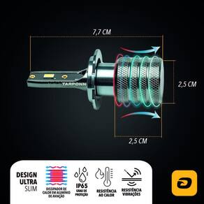 O kit lâmpada led tarponn t2 ultra slim, da linha cyber tarponn, é compacto, versátil e ideal para seu carro. Com acabamento em alumínio de aviação e tecnologia de led coreano csp, oferece alta intensidade luminosa. Resistente a vibrações e calor, seu design ultra slim e suporte removível garantem fácil instalação. Possui dissipador em alumínio para maior durabilidade, iluminação branca fria 6000k e fluxo luminoso de 3000 lumens, sendo aplicável para farol alto e baixo.