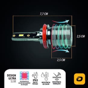 O kit lâmpada led tarponn t2 ultra slim, da linha cyber tarponn, é compacto, versátil e ideal para seu carro. Com acabamento em alumínio de aviação e tecnologia de led coreano csp, oferece alta intensidade luminosa. Resistente a vibrações e calor, seu design ultra slim e suporte removível garantem fácil instalação. Possui dissipador em alumínio para maior durabilidade, iluminação branca fria 6000k e fluxo luminoso de 3000 lumens, sendo aplicável para farol alto e baixo.