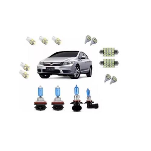 Kit lâmpada super branca + leds honda new civic 2013 a 2017 Descrição As lâmpadas emitem luz com exclusiva temperatura de cor 8500k, gerando luminosidade na cor super branca de tom azulado. O bonito efeito xenon substituirá o tom amarelado das lâmpadas . Além disso, esta lâmpada garante a qualidade dos produtos melhorando o custo benefício por se tratar de uma marca renomada e confiável. Lâmpadas com excelente padrão de qualidade e com certificação do inmetro. Benefícios: Super branca; Visibilidade e segurança durante a condução noturna; Maior conforto; Melhor reflexão nas placas e nos sinais nas estradas; Ótima performance na emissão de luz com o mesmo consumo das lâmpadas convencionais; Instalação sem necessidade de adaptações no sistema elétrico do veículo; Dispensa o uso de reator ou relê utilizando conexões . Dados técnicos: Cor de emissão: branca Potência: 55w Tipo: hb3, h11 Voltagem: 12v carro Homologado inmetro Itens inclusos: 2 lâmpadas super branca h11 farol baixo 2 lâmpadas super branca hb3 farol alto 2 lâmpadas t10 torre 5 leds farolete 2 lâmpadas t10 8 leds placa 1 lâmpadas t10 torre 5 leds porta malas 1 lâmpadas t10 torre 5 leds teto traseiro 1 lâmpadas t10 torre 5 leds porta luvas 2 lâmpadas led t10 8 leds teto modelo: 1 2 torpedo luz de teto 16 leds 31mm teto modelo: 2 Ano: 2013 2014 2015 2016 2017 legal de 3 meses para defeitos de fabricação. Marca: Não Informado