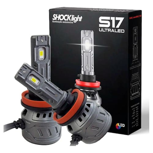 Toda a qualidade e excelência do Ultra LED à sua disposição neste par de lâmpadas, inovação que dispensa o uso de Canceller, e mais ainda, pois este modelo conta com cooler de última geração e moderna tecnologia de dissipação de calor.Própria para carros que operam com 9/32V Bivolt este Par Lâmpada Ultra LED possui temperatura de cor de 6000K, que são nada mais nada menos do que 10000 Lúmens no par. Assim a luz emitida fica na faixa de tonalidade branca, fornecendo uma iluminação mais eficiente e bonita. Com acabamento galvanizado e corpo em liga de alumínio, você pode instalar e ficar despreocupado, pois o Ultra LED é resistente ao calor, vibrações e até mesmo à umidade, graças ao seu alto nível de impermeabilidade. Especificações Técnicas: - Marca: Shocklight- Modelo: S17- Temperatura de Cor: 6000K - Eficiência de 5000 Lúmens Cada- Tonalidade Branca - Potência: 55W (Cada) - Voltagem: 9/32V Bivolt - Quantidade de 2 LEDs por Lâmpada - Com Cooler - Acabamento Galvanizado e Cromado - Corpo de Liga de Alumínio - Despolarizado - Resistente a Vibrações - Resistente ao Calor - Proporciona Melhora na Visualização de Placas e Sinalizações - Dispensa o uso de canceller Conteúdo da Embalagem: - 02 Lâmpadas Ultra LED S17