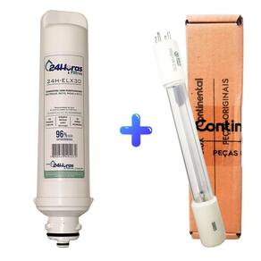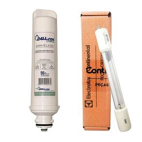 Kit com Filtro Refil Compatível com Purifcador de Água Electrolux PA31G e Lâmpada UV. Filtro específico para os modelos PA 31 - PA31G. Elimina Cloro, Gostos, Cheiros, Partículas Sólidas e ajuda a Elevar o pH. Lâmpada UV com filtragem adicional e raios ultra violeta que eliminam bactérias.Tipo