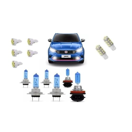 Kit lampadas farol e milha fiat argo 2017 2019 super brancas Kit lampadas fiat argo 2017 2018 2019 super brancas farol e milha Lampadas homologadas e certificadas pelo inmetro Todas lampadas liberadas pelo detran Optar por este kit de lâmpadas super brancas é uma opção muito inteligente, pois além de você conseguir uma iluminação ótima com muito mais eficiência no seu carro, ainda garante uma estética diferenciada e esportiva. Trabalhando com apenas 55w de potência, ele ainda economiza a bateria do seu veículo, contando com uma vida útil até 3 vezes maior que as lâmpadas convencionais. Marca: tech one Temperatura da lampada : 8500k Modelo: 55w de potência, 12 volts, não precisa de relê Luz branca Vida útil até 3 vezes maior Vidros de quartzo com tecnologia uv-block, garantido a segurança das lentes plásticas dos faróis Mais conforto e segurança ao dirigir Permitidas pela legislação de trânsito Não ofusca a visão dos outros motoristas. Aplicação Fiat argo 2017 2018 2019 Itens inclusos: 02 x pares de lampadas super brancas h7 55w 01 x par de lampadas super brancas h11 55w 02 x lâmpadas t10 pingo 28 leds branco farolete 02 x lâmpadas t10 pingo 08 leds branco placa 02 x lâmpadas t10 pingo 08 leds branco teto 01 x lâmpadas t10 pingo 08 leds branco mala Marca: Blue Lion