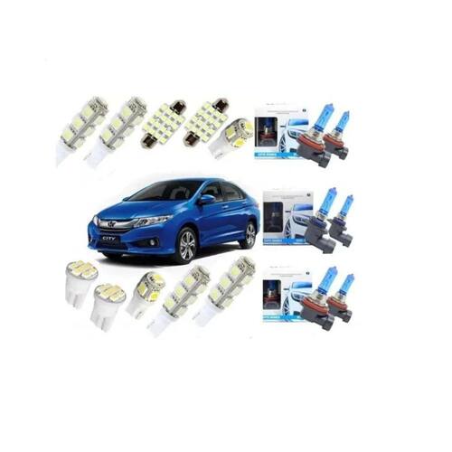 Kit lâmpadas led city 2015 2016 + super branca techone Descrição blue lion Compatível com: City 2015 em diante Honda: new city - ano 2015 em diante não servirá para honda city modelo antigo até ano 2014 Especificações técnicas: Alimentação 12v dc Baixo consumo de energia bateria Alta luminosidade Ótima qualidade Conteúdo: 02 x lâmpadas t10 pingo 13 leds 1206 4,5cm x 1,2cm - luz de farolete / pingo meia luz 02 x lâmpadas torpedo 16 leds 39mm 1210 3,9cm x 1,6cm - luz de teto dianteiro 01 x lâmpadas t10 pingo 05 leds 1206 2,7cm x 1,2cm - luz de teto traseiro 01 x lâmpadas t10 pingo 05 leds 1206 2,7cm x 1,2cm - luz de porta malas 02 x lâmpadas t10 pingo 08 leds 1206 2,5cm x 1,2cm - luz de placa 02 x lâmpadas t10 pingo 13 leds 1206 4,5cm x 1,2cm - luz de ré . 2 - lâmpadas h11 super brancas farol baixo 2 - lâmpadas hb3 super brancas farol alto 2 - lâmpadas h11 super brancas farol de milha Importante: Toda lâmpada de led possui polaridade exata, caso não ligue ao conectar, basta invertê-la no soquete e testar novamente. Recomendamos que a instalação seja feita por profissional especializado, não nos responsabilizamos pelo mau uso do produto. Imagens meramente ilustrativas. Marca: Blue Lion