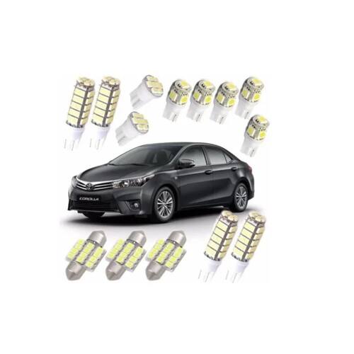Kit Lampadas Led Corolla 2014 2015 2016 Pingo Teto Placa Ré COMPATÍVEL COM: Corolla 2014 2015 2016 2017 2018 2019 ESPECIFICAÇÕES TÉCNICAS: Alimentação 12V DC Baixo Consumo de Energia Bateria Alta Luminosidade Ótima Qualidade CONTEÚDO: 02 x Lâmpada T10 Pingo 68 LEDs 1206 4,5cm x 1,2cm - Luz de Farolete / Pingo meia luz 02 x Lâmpada T10 Pingo 08 LEDs 1206 2,5cm x 1,2cm - Luz de Teto Dianteiro 01 x Lâmpada Torpedo 12 LEDs 31mm 1210 3,1cm x 1,6cm - Luz de Teto Traseiro 02 x Lâmpadas T10 Pingo 05 LEDs 1206 2,7cm x 1,2cm - Luz de Quebra Sol Mod. 1 02 x Lâmpada Torpedo 12 LEDs 31mm 1210 3,1cm x 1,6cm - Luz de Quebra Sol Mod. 2 01 x Lâmpadas T10 Pingo 05 LEDs 1206 2,7cm x 1,2cm - Luz de Porta Malas 02 x Lâmpadas T10 Pingo 05 LEDs 1206 2,7cm x 1,2cm - Luz de Placa 02 x Lâmpadas T10 Pingo 68 LEDs 1206 4,5cm x 1,2cm - Luz de Ré IMPORTANTE: Toda lâmpada de LED possui polaridade exata, caso não ligue ao conectar, basta invertê-la no soquete e testar novamente. Recomendamos que a instalação seja feita por especializado, não nos responsabilizamos pelo mau uso do produto. Imagens Meramente Ilustrativas. Marca: Não Informado Ean: 7896687249046