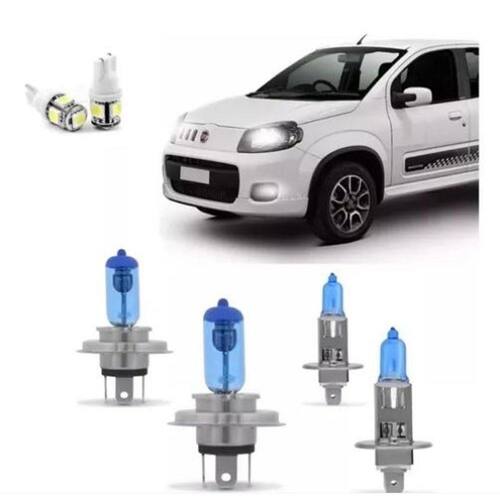 Kit Lampadas Novo Uno Vivace Way Sporting 2010 2011 2012 2013 2014 2015 2016 2017 Super Branca H4 H1 8500K/2 Com Selo do Inmetro