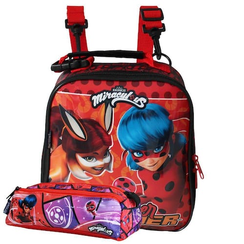 Chegaram os novos kits de lancheira com estojo para os fãs da popular série de animação miraculous: as aventuras de ladybug. Com um design vibrante e colorido, a lancheira e o estojo são inspirados na personagem principal da série, ladybug.