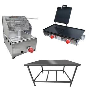 Esse Kit conta com Mesa de Manipulação para você preparar os alimentos, Fritadeira para fritura de suas porções e uma Chapa para preparação do seu cardápio!