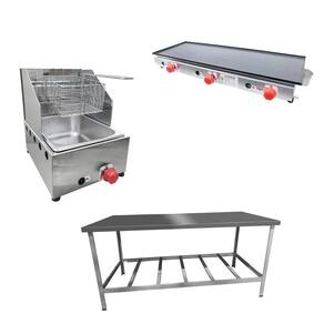 Esse Kit conta com Mesa de Manipulação para você preparar os alimentos, Fritadeira para fritura de suas porções e uma Chapa para preparação do seu cardápio!
