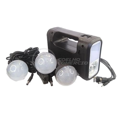Kit Lanterna Placa Solar Carregador Portatil Energia Nº 10 Gdlite -A energia solar fornece corrente contínua para iluminação e carregamento de dispositivos móveis. Além de ser útil em momentos de necessidade, o sistema solar também é útil para eventos ao ar livre e viagens noturnas. Ele também vem com um painel solar com lanternas, lâmpadas LED e uma Placa solar. -utilizando energia solar renovável, este dispositivo de iluminação é obrigatório durante apagões e situações de emergência. Este dispositivo também é fácil de usar, muito intuitivo e pratico. Também foi comprovado que não há ruído, permitindo que você aprecie as atividades ao ar livre ou a paz e tranquilidade da noite. Características do Produto Cor: Preto Capacidade: 4500mAh Potência: 20w Entrada USB para carregar celulares ou outros equipamentos Material: Polipropileno e Componentes Eletrônicos. Produto 100% autêntico e de alta qualidade Possui indicador de nível de bateria Carregamento Adaptador de Tomada: Bivolt 110/220V - 50 / 60Hz Carregamento também por Placa Solar Entrada: DC 6V Saída: DC 9V Saída USB: 4x 5V = 0,5A Tempo de carregamento: 8-10 horas Tempo de Recarga no Sol: 12hs Tempo de trabalho: 7 à 12 horas A Lâmpada Led É 90 Lumens, A Luz Lateral É 150 Lumens Quantidade de Leds Lâmpada Bulbo: 8 Potência Lâmpada Bulbo: 3W Dimensões Altura x Largura x Comprimento : Medidas Placa Solar: 2 cm x 14 cm x 26 cm Medidas Lâmpada Bulbo: 9cm x 6cm Comprimento Cabo da Lâmpada Bulbo: 3 metros 40 cm Comprimento Cabo Fonte Controle Principal: 50 cm Conteúdo da embalagem 1 Controle Principal Acoplado no Painel , com entradas para Lâmpadas, Fontes, USB, Liga/Desliga. 3 Lâmpadas Bulbo 1 Placa Solar 1 Cabo USB 5 EntradasNº Certificado INMETRO: BR34048003Certificador: BVQI Marca: Gdlite