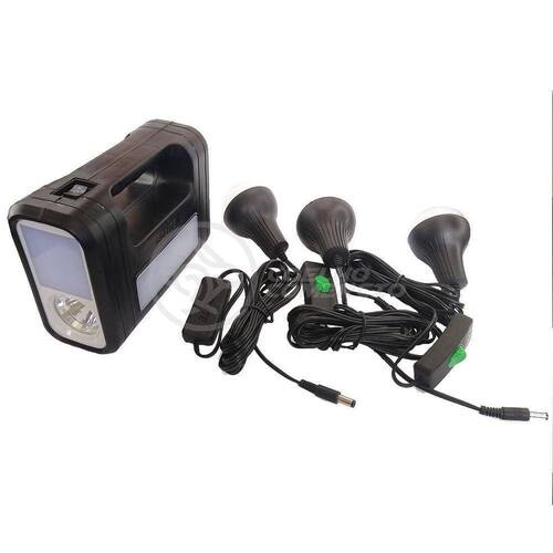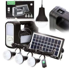 Kit Lanterna Placa Solar Carregador Portatil Energia Nº 21 Gdlite -A energia solar fornece corrente contínua para iluminação e carregamento de dispositivos móveis. Além de ser útil em momentos de necessidade, o sistema solar também é útil para eventos ao ar livre e viagens noturnas. Ele também vem com um painel solar com lanternas, lâmpadas LED e uma Placa solar. -utilizando energia solar renovável, este dispositivo de iluminação é obrigatório durante apagões e situações de emergência. Este dispositivo também é fácil de usar, muito intuitivo e pratico. Também foi comprovado que não há ruído, permitindo que você aprecie as atividades ao ar livre ou a paz e tranquilidade da noite. Características do Produto Cor: Preto Capacidade: 4500mAh Potência: 20w Entrada USB para carregar celulares ou outros equipamentos Material: Polipropileno e Componentes Eletrônicos. Produto 100% autêntico e de alta qualidade Possui indicador de nível de bateria Carregamento Adaptador de Tomada: Bivolt 110/220V - 50 / 60Hz Carregamento também por Placa Solar Entrada: DC 6V Saída: DC 9V Saída USB: 4x 5V = 0,5A Tempo de carregamento: 8-10 horas Tempo de Recarga no Sol: 12hs Tempo de trabalho: 7 à 12 horas A Lâmpada Led É 90 Lumens, A Luz Lateral É 150 Lumens Quantidade de Leds Lâmpada Bulbo: 8 Potência Lâmpada Bulbo: 3W Dimensões Altura x Largura x Comprimento : Medidas Placa Solar: 2 cm x 14 cm x 26 cm Medidas Lâmpada Bulbo: 9cm x 6cm Comprimento Cabo da Lâmpada Bulbo: 3 metros 40 cm Comprimento Cabo Fonte Controle Principal: 50 cm Conteúdo da embalagem 1 Controle Principal Acoplado no Painel , com entradas para Lâmpadas, Fontes, USB, Liga/Desliga. 3 Lâmpadas Bulbo 1 Placa Solar 1 Cabo USB 5 EntradasNº Certificado INMETRO: BR34048003Certificador: BVQI Marca: Gdlite