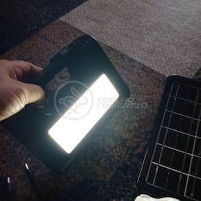 Kit Lanterna Placa Solar Carregador Portatil Energia Nº 24 Gdlite -A energia solar fornece corrente contínua para iluminação e carregamento de dispositivos móveis. Além de ser útil em momentos de necessidade, o sistema solar também é útil para eventos ao ar livre e viagens noturnas. Ele também vem com um painel solar com lanternas, lâmpadas LED e uma Placa solar. -utilizando energia solar renovável, este dispositivo de iluminação é obrigatório durante apagões e situações de emergência. Este dispositivo também é fácil de usar, muito intuitivo e pratico. Também foi comprovado que não há ruído, permitindo que você aprecie as atividades ao ar livre ou a paz e tranquilidade da noite. Características do Produto Cor: Preto Capacidade: 4500mAh Potência: 20w Entrada USB para carregar celulares ou outros equipamentos Material: Polipropileno e Componentes Eletrônicos. Produto 100% autêntico e de alta qualidade Possui indicador de nível de bateria Carregamento Adaptador de Tomada: Bivolt 110/220V - 50 / 60Hz Carregamento também por Placa Solar Entrada: DC 6V Saída: DC 9V Saída USB: 4x 5V = 0,5A Tempo de carregamento: 8-10 horas Tempo de Recarga no Sol: 12hs Tempo de trabalho: 7 à 12 horas A Lâmpada Led É 90 Lumens, A Luz Lateral É 150 Lumens Quantidade de Leds Lâmpada Bulbo: 8 Potência Lâmpada Bulbo: 3W Dimensões Altura x Largura x Comprimento : Medidas Placa Solar: 2 cm x 14 cm x 26 cm Medidas Lâmpada Bulbo: 9cm x 6cm Comprimento Cabo da Lâmpada Bulbo: 3 metros 40 cm Comprimento Cabo Fonte Controle Principal: 50 cm Conteúdo da embalagem 1 Controle Principal Acoplado no Painel , com entradas para Lâmpadas, Fontes, USB, Liga/Desliga. 3 Lâmpadas Bulbo 1 Placa Solar 1 Cabo USB 5 EntradasNº Certificado INMETRO: BR34048003Certificador: BVQI Marca: Gdlite