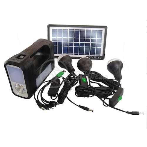Kit Lanterna Placa Solar Carregador Portatil Energia Emergência Painel Lampadas Acampamento Camping Gdlite -A energia solar fornece corrente contínua para iluminação e carregamento de dispositivos móveis. Além de ser útil em momentos de necessidade, o sistema solar também é útil para eventos ao ar livre e viagens noturnas. Ele também vem com um painel solar com lanternas, lâmpadas LED e uma Placa solar. -utilizando energia solar renovável, este dispositivo de iluminação é obrigatório durante apagões e situações de emergência. Este dispositivo também é fácil de usar, muito intuitivo e pratico. Também foi comprovado que não há ruído, permitindo que você aprecie as atividades ao ar livre ou a paz e tranquilidade da noite. Características do Produto Cor: Preto Capacidade: 4500mAh Potência: 20w Entrada USB para carregar celulares ou outros equipamentos Material: Polipropileno e Componentes Eletrônicos. Produto 100% autêntico e de alta qualidade Possui indicador de nível de bateria Carregamento Adaptador de Tomada: Bivolt 110/220V - 50 / 60Hz Carregamento também por Placa Solar Entrada: DC 6V Saída: DC 9V Saída USB: 4x 5V = 0,5A Tempo de carregamento: 8-10 horas Tempo de Recarga no Sol: 12hs Tempo de trabalho: 7 à 12 horas A Lâmpada Led É 90 Lumens, A Luz Lateral É 150 Lumens Quantidade de Leds Lâmpada Bulbo: 8 Potência Lâmpada Bulbo: 3W Dimensões Altura x Largura x Comprimento : Medidas Placa Solar: 2 cm x 14 cm x 26 cm Medidas Lâmpada Bulbo: 9cm x 6cm Comprimento Cabo da Lâmpada Bulbo: 3 metros 40 cm Comprimento Cabo Fonte Controle Principal: 50 cm Conteúdo da embalagem 1 Controle Principal Acoplado no Painel , com entradas para Lâmpadas, Fontes, USB, Liga/Desliga. 3 Lâmpadas Bulbo 1 Placa Solar 1 Cabo USB 5 Entradas