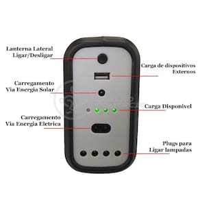 Kit Lanterna Placa Solar Carregador Portatil Energia Emergência Painel Lampadas Acampamento Camping Gdlite -A energia solar fornece corrente contínua para iluminação e carregamento de dispositivos móveis. Além de ser útil em momentos de necessidade, o sistema solar também é útil para eventos ao ar livre e viagens noturnas. Ele também vem com um painel solar com lanternas, lâmpadas LED e uma Placa solar. -utilizando energia solar renovável, este dispositivo de iluminação é obrigatório durante apagões e situações de emergência. Este dispositivo também é fácil de usar, muito intuitivo e pratico. Também foi comprovado que não há ruído, permitindo que você aprecie as atividades ao ar livre ou a paz e tranquilidade da noite. Características do Produto Cor: Preto Capacidade: 4500mAh Potência: 20w Entrada USB para carregar celulares ou outros equipamentos Material: Polipropileno e Componentes Eletrônicos. Produto 100% autêntico e de alta qualidade Possui indicador de nível de bateria Carregamento Adaptador de Tomada: Bivolt 110/220V - 50 / 60Hz Carregamento também por Placa Solar Entrada: DC 6V Saída: DC 9V Saída USB: 4x 5V = 0,5A Tempo de carregamento: 8-10 horas Tempo de Recarga no Sol: 12hs Tempo de trabalho: 7 à 12 horas A Lâmpada Led É 90 Lumens, A Luz Lateral É 150 Lumens Quantidade de Leds Lâmpada Bulbo: 8 Potência Lâmpada Bulbo: 3W Dimensões Altura x Largura x Comprimento : Medidas Placa Solar: 2 cm x 14 cm x 26 cm Medidas Lâmpada Bulbo: 9cm x 6cm Comprimento Cabo da Lâmpada Bulbo: 3 metros 40 cm Comprimento Cabo Fonte Controle Principal: 50 cm Conteúdo da embalagem 1 Controle Principal Acoplado no Painel , com entradas para Lâmpadas, Fontes, USB, Liga/Desliga. 3 Lâmpadas Bulbo 1 Placa Solar 1 Cabo USB 5 Entradas