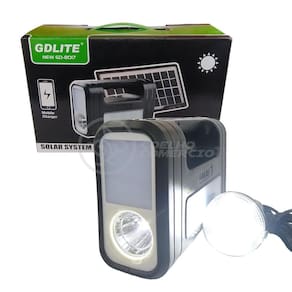 Kit Lanterna Placa Solar Carregador Portatil Energia Emergência Painel Lampadas Acampamento Camping Gdlite -A energia solar fornece corrente contínua para iluminação e carregamento de dispositivos móveis. Além de ser útil em momentos de necessidade, o sistema solar também é útil para eventos ao ar livre e viagens noturnas. Ele também vem com um painel solar com lanternas, lâmpadas LED e uma Placa solar. -utilizando energia solar renovável, este dispositivo de iluminação é obrigatório durante apagões e situações de emergência. Este dispositivo também é fácil de usar, muito intuitivo e pratico. Também foi comprovado que não há ruído, permitindo que você aprecie as atividades ao ar livre ou a paz e tranquilidade da noite. Características do Produto Cor: Preto Capacidade: 4500mAh Potência: 20w Entrada USB para carregar celulares ou outros equipamentos Material: Polipropileno e Componentes Eletrônicos. Produto 100% autêntico e de alta qualidade Possui indicador de nível de bateria Carregamento Adaptador de Tomada: Bivolt 110/220V - 50 / 60Hz Carregamento também por Placa Solar Entrada: DC 6V Saída: DC 9V Saída USB: 4x 5V = 0,5A Tempo de carregamento: 8-10 horas Tempo de Recarga no Sol: 12hs Tempo de trabalho: 7 à 12 horas A Lâmpada Led É 90 Lumens, A Luz Lateral É 150 Lumens Quantidade de Leds Lâmpada Bulbo: 8 Potência Lâmpada Bulbo: 3W Dimensões Altura x Largura x Comprimento : Medidas Placa Solar: 2 cm x 14 cm x 26 cm Medidas Lâmpada Bulbo: 9cm x 6cm Comprimento Cabo da Lâmpada Bulbo: 3 metros 40 cm Comprimento Cabo Fonte Controle Principal: 50 cm Conteúdo da embalagem 1 Controle Principal Acoplado no Painel , com entradas para Lâmpadas, Fontes, USB, Liga/Desliga. 3 Lâmpadas Bulbo 1 Placa Solar 1 Cabo USB 5 Entradas