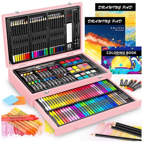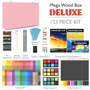 Fácil de transportar conjunto de desenho de caixa de madeira de 153 peças, facilitando para o seu filho colorir e criar em qualquer lugar que você possa abrir seu estojo O estojo de transporte portátil mantém seus componentes de arte organizados. Este conjunto de arte é ótimo para ambos os alunos, especialmente para qualquer criança que goste de rabiscar ou queira inspirar e aproveitar a alegria de desenhar e pintar. são ótimas ferramentas para mostrar o talento de desenho incrível para crianças e adultos