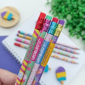 Que os Lapis da LEO&LEO tem uma escrita macia e precisão vocês já sabem, agora olha essa nova linha de estampa de sorvete, está otimo para deixar seus estudos ainda mais gostosos e divertidos. Corpo estampado com o tema picolé