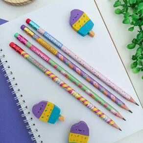 Lápis Preto HB com borracha Picolé estampas diversas (1 unidade) - LEO&LEO