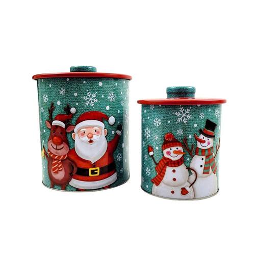 Adicione um toque festivo à sua casa e presenteie com estilo com o Kit Lata Natalina De Metal 22/17Cm Papai Noel Pote.