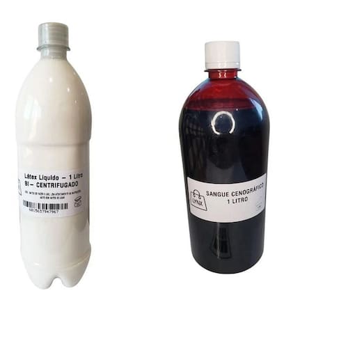 Descrição do produto: Kit Latex 1 litro e Sangue Falso Artificial para Zumbi, Cicatriz,Caracterização Maquiagem Efeitos, Cosplay Látex bi centrifugado vulcanizado com 4% de amonia em sua composição. Utilizado geralmente no auxílio para impermeabilizar a maquiagem/massa, proporcionando cenas externas na chuva, mergulho, etc... Também para prolongar a duração da mesma. Ideal para fazer máscaras, bonecos, cicatrizes, prótese artistica, efeitos especiais, cenários, moldes para reproduzir peças em gesso, emborrachar tapetes e outros... Aconselha-se que este produto seja Utilizado por profissional, pois requer muitos cuidados na manipulação.O produto contém amônia 4% por isso seu cheiro pode ser um pouco forte em seu estado líquido. Quando seca também permanece um cheiro de borracha. Látex de alta qualidade especialmente formulado pra confecção de máscaras, cicatrizes, envelhecimento, próteses em geral. Maquiagem artística, objetos e moldes para reproduzir peças em gesso. Encha o molde de gesso com látex até a boca, deixe descansar por algumas horas, despeje o látex de volta no frasco e deixe o molde de boca pra baixo até que o látex seque por completo, passe talco dentro e fora da peça de látex para que as paredes não grudem entre si.. Para tingir o látex use corantes a base de água. Sangue Teatral, para cinema, tv, Artificial. Muito Utilizado como complemento na criação dos efeitos de cortes, feridas, queimaduras etc... O sangue falso não deixa manchas, é de fácil remoção da pele, pode ser Utilizado na boca uso externo e é hipoalergênico. Conteúdo: 1 Litro Não comestível. Kit contém: 1 Litro de Látex e 1 Litro de Sangue Artificial Falso. OBS: Cuidado ao fazer uso do látex perto de tecidos e ou roupas, pois ele danifica e não sai mais.