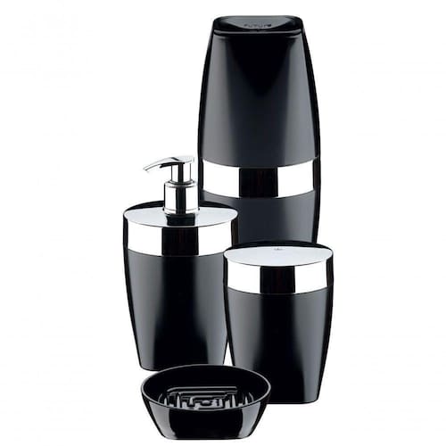 O Conjunto para Banheiro é o kit completo para guardar e organizar os itens de higiene pessoal. É composto por quatro peças: um porta escova e creme dental, um porta sabonete líquido, um porta algodão e uma saboneteira.
