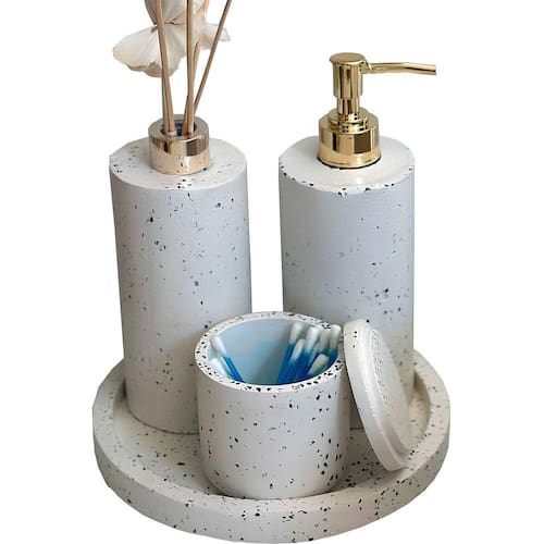 Muitas vezes, os banheiros podem parecer desorganizados e sem estilo, com itens espalhados e sem um lugar específico para cada coisa. Nosso Kit Lavabo oferece uma solução elegante e funcional. Ele inclui uma bandeja luxuosa, uma saboneteira, um porta-cotonetes e um aromatizador. Com esses acessórios, você pode manter seus itens organizados e adicionar um toque sofisticado ao seu banheiro.