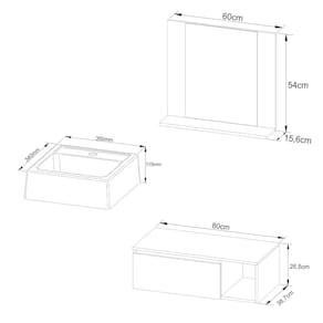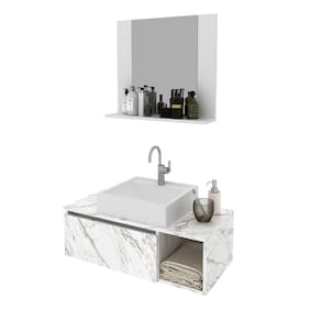 O Kit para Banheiro é a escolha ideal para dar um toque de elegância e organização ao seu espaço. Com um design contemporâneo, ele transforma o ambiente em um local mais convidativo e prático. Fabricado com materiais de alta qualidade, o kit oferece durabilidade e um visual sofisticado, tornando seu banheiro ainda mais funcional e bonito. CARACTERÍSTICAS TÉCNICAS: - Produzida em MDP de 15 mm - Acabamento UV na cor Mármore Branco e Branco - Acompanha Espelho - Cuba em Mármore Sintético - Porta Basculante com Dobradiça e Articulador - Balcão Suspenso - Puxador tipo Cava *Kit Composto por Gabinete Suspenso (3601), Espelheira (3610) e Cuba (3630) INFORMAÇÕES TÉCNICAS: 3601: Alt. 26,5 x Larg. 80 x Prof. 38,7 cm P. 10,8 kg 3610: Alt. 54 cm x Larg. 60 cm x Prof. 15,6 cm x P. 6,35 3630: Alt. 11,5 x Larg. 35 x Prof. 34 cm P. 5,5 kg INFORMAÇÕES ADICIONAIS: - ATENÇÃO: Não trabalhamos e não nos responsabilizamos pela montagem do móvel. Antes da montagem conferir se o produto está de acordo com o que comprou, produto montado e danificado pela montagem não será aceito troca. Montagem e instalação por conta do comprador. - As imagens ambientadas são meramente ilustrativas e podem apresentar itens que não compõe o produto. As cores do produto podem variar de acordo com o monitor, a iluminação do ambiente ou sua percepção visual. - Limpeza: Deve ser feita com pano macio e seco ou levemente umedecido com água e sabão neutro. Não devem ser utilizados abrasivos como palha de aço e objetos cortantes. -Garantia para defeitos de fabricação conforme Código de Defesa do Consumidor.