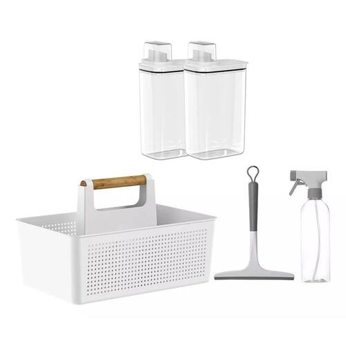 Kit Lavandeira Flow com 02 Dispenser de Sabão 2,3 L + 01 Borrifador + 01 Rodo + 01 Cesto - Itens inclusos