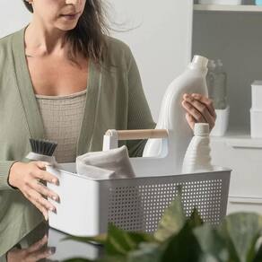 O Dispenser Flow é a solução ideal para armazenar uma variedade de produtos de limpeza, como amaciante, sabão em pó e desinfetante. Sua transparência facilita a gestão visual da lavanderia, proporcionando tranquilidade durante as tarefas domésticas. O Borrifador Multiuso Flow proporciona uma rotina eficiente de cuidados com a casa, tornando a limpeza diária mais confortável. É capaz de armazenar diversos tipos de produtos de limpeza, como álcool, limpa vidros e essências. O Rodo Multiuso Flow é versátil, adaptando-se à limpeza de superfícies, vidros e janelas. Sua lâmina de silicone promove uma remoção eficaz de líquidos durante a limpeza, enquanto o cabo anatômico proporciona conforto e firmeza ao segurar.O Organizador Multiuso Flow foi projetado para simplificar o armazenamento e transporte dos itens essenciais de limpeza. Torne as tarefas domésticas mais fluidas e eficientes, mantendo tudo ao alcance quando necessário.