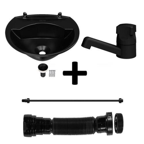 Um kit completo para instalação de seu lavatório, garantindo praticidade e modernidade. Todas as principais peças na cor preto, garantindo um design sofisticado com um ótimo custo benefício.Kit composto por: Torneira Lavatório Engate de 50 cm Sifão UniversalCaracterísticas da Torneira: Cor: preto Instalação: Mesa Volante anatômicoCaracterísticas do Lavatório: Cor: preto Fabricado em polipropileno Resistente à ação de produtos químicos Possui porta sabonete Ergonômico Capacidade total 4,0 litros Capacidade utilizável 3,8 litros Medidas: 36cm X 28cm X 15cm Acompanha válvula de 7/8 diâmetro e parafusos para fixaçãoCaracterísticas do Sifão: Cor: Preto Fabricado em Polipropileno Matéria prima virgem Suporta água fria ou quente até 90C Entradas de 7/8, 1 1/4 e 1 1/2 Saídas de 40 mm e 50 mm para tubos e conexões Corrige desalinhamentos entre a válvula da cuba/pia e a tubulação de despejo.Características do Engate: Cor: Preto Comprimento: 50cm Suporta 40 m.C.A. Ou 4kgf/cm Indicado somente para água fria Temperatura máxima: 30 ºC Possui terminais que evitam a torção da mangueira Possui estética discretaIndicações de uso: Banheiro Lavabo