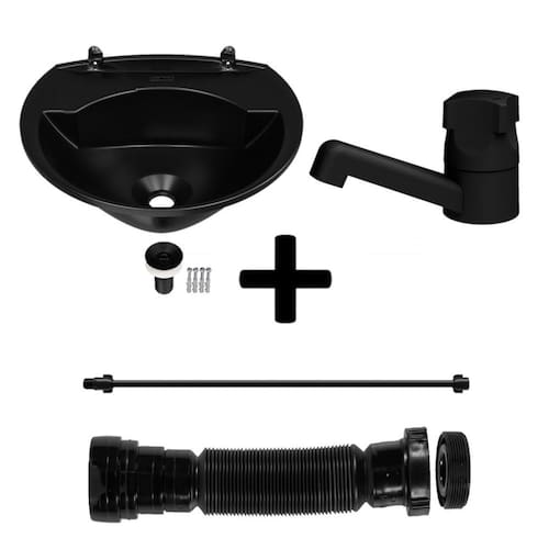 Um kit completo para instalação de seu lavatório, garantindo praticidade e modernidade. Todas as principais peças na cor preto, garantindo um design sofisticado com um ótimo custo benefício.