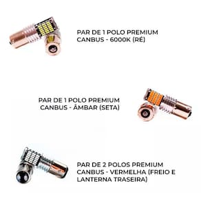 - par de 1 polo led premium canbus - 6000k ré - par de 1 polo led premium canbus - âmbar seta - par de 2 polos led premium canbus - vermelha freio e lanterna traseira