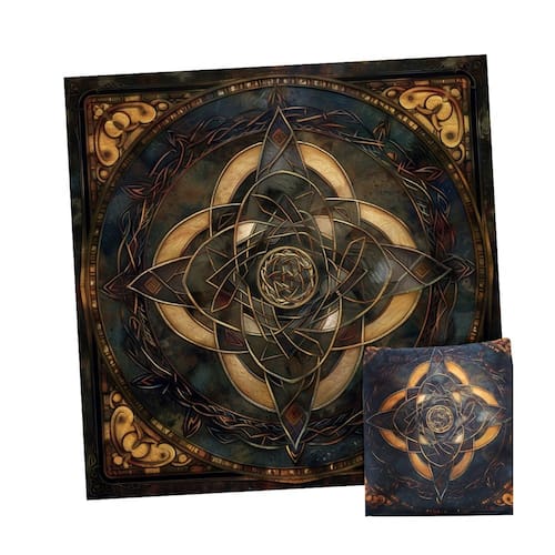 O que acompanha o kit? Toalha para Leitura de Tarô Celta Estampa inspirada na tradição celta, rica em simbolismo Auxilia na concentração, foco e conexão intuitiva Delimita o espaço sagrado da leitura Ideal para tarô, oráculos e baralhos diversos
