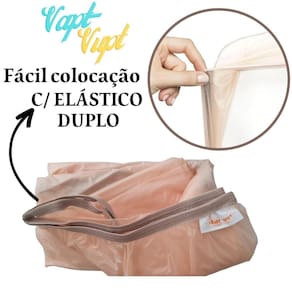 composição: confeccionado em plástico pvc 100% siliconizado com elástico de 14,5mm na borda, sistema vapt-vupt. Fronha 70cm x 52cm. Composição: 100% pvc siliconado. Com zipper lateral facilitando a colocação. Cor: bege. - o material é plástico