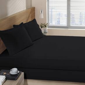 Kit Lencol Elástico e Fronha Casal 230 Fios Reffinata Buettner Preto