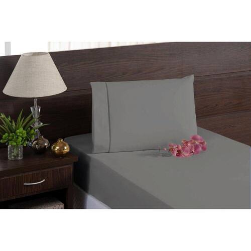 Kit Lençol Solteiro Ponto Palito Com Elástico 2 Peças Cinza