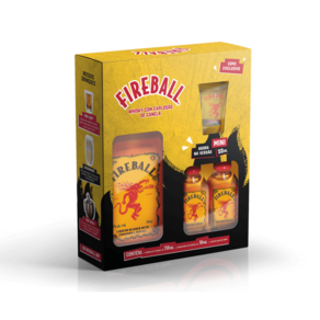 O Fireball vem apresentado em uma garrafa de 750ml, acompanhada de duas miniaturas de 50ml e um copo de shot, tornando-o uma excelente escolha para compartilhar com amigos ou para uma celebração especial. A embalagem elegante e prática possibilita que você leve seu licor preferido a qualquer lugar.