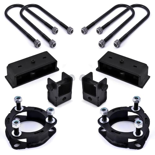 Especificações : Kit Lift de 2 polegadas para subir 5 Cm de altura. Fabricados em aço 1020. Pintura eletrostática, preto fosco. Produtos passam por banho de ácido e depois são zincados para ser pintados. Não precisa de adaptações