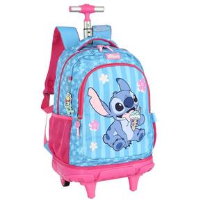 Kit Lilo Stitch Mochila 2Em1 Rodas Costas + Estojo Box Luxo