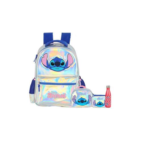 Kit Stitch Mochila 3D Prata + Lancheira + Estojo Box + Garrafa Prepare-se para a maior aventura intergaláctica com o kit Stitch 3D prata Ideal para os fãs do alienígena mais querido da Disney, esse kit é perfeito para a escola, viagens ou simplesmente para mostrar seu amor pelo Stitch. Mochila Costas: Design 3D: A estampa do rosto do Stitch em 3D prata salta aos olhos e deixa qualquer criança encantada. Conforto e praticidade: Alças de costas ajustáveis e acolchoadas para um transporte confortável e alça de mão Organização: Bolso lateral para garrafa de água e compartimento principal espaçoso para guardar todos os materiais escolares com bolso frontal. Durabilidade: Confeccionada em material resistente, garantindo longa vida útil. Lancheira Térmica: Tecnologia térmica: Mantém os alimentos e bebidas na temperatura ideal por mais tempo, garantindo lanches fresquinhos e saborosos. Versatilidade: Alça de costas ajustável para carregar como mochila ou encaixe para fixar na mochila de rodinhas. Design moderno: Estampa do Stitch em prata combinando com a mochila, além de detalhes modernos e divertidos. Estojo Box: Espaçoso e organizado: Divisoria para guardar canetas, lápis, borrachas e outros materiais escolares de forma prática e segura com elasticos. Material resistente: Confeccionado em material durável para acompanhar a rotina agitada das crianças. Design moderno: Estampa do Stitch em prata, combinando com os demais itens do kit.
