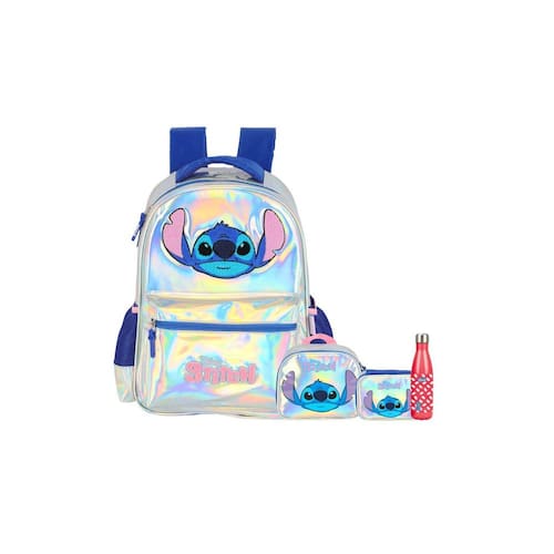 Kit Stitch Mochila 3D Prata + Lancheira + Estojo Box + Garrafa Prepare-se para a maior aventura intergaláctica com o kit Stitch 3D prata Ideal para os fãs do alienígena mais querido da Disney, esse kit é perfeito para a escola, viagens ou simplesmente para mostrar seu amor pelo Stitch. Mochila Costas: Design 3D: A estampa do rosto do Stitch em 3D prata salta aos olhos e deixa qualquer criança encantada. Conforto e praticidade: Alças de costas ajustáveis e acolchoadas para um transporte confortável e alça de mão Organização: Bolso lateral para garrafa de água e compartimento principal espaçoso para guardar todos os materiais escolares com bolso frontal. Durabilidade: Confeccionada em material resistente, garantindo longa vida útil. Lancheira Térmica: Tecnologia térmica: Mantém os alimentos e bebidas na temperatura ideal por mais tempo, garantindo lanches fresquinhos e saborosos. Versatilidade: Alça de costas ajustável para carregar como mochila ou encaixe para fixar na mochila de rodinhas. Design moderno: Estampa do Stitch em prata combinando com a mochila, além de detalhes modernos e divertidos. Estojo Box: Espaçoso e organizado: Divisoria para guardar canetas, lápis, borrachas e outros materiais escolares de forma prática e segura com elasticos. Material resistente: Confeccionado em material durável para acompanhar a rotina agitada das crianças. Design moderno: Estampa do Stitch em prata, combinando com os demais itens do kit.