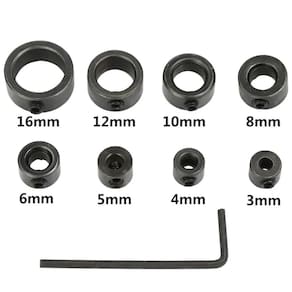 Kit Limitadores de Profundidade para Brocas 3 a 16mm Kit Limitadores de brocas 3mm, 4mm, 5mm, 6mm, 8mm, 10mm, 12mm e 16mm. Limitadores produzidos em aço carbono endurecido - Marca: Dremax - Referência: KLP9 - Realize as furações de forma rápida e segura limitando a profundidade das suas brocas, ideal para um trabalho com agilidade e precisão - O Kit de Limitadores é universal, servem em todos tipos de brocas possuindo o mesmo diâmetro - 1 Limitador de profundidade 3mm - 1 Limitador de profundidade 4mm - 1 Limitador de profundidade 5mm - 1 Limitador de profundidade 6mm - 1 Limitador de profundidade 8mm - 1 Limitador de profundidade 10mm - 1 Limitador de profundidade 12mm - 1 Limitador de profundidade 16mm - 1 Chave allen - : 90 dias Marca: Não Informado Ean: 7734625991902