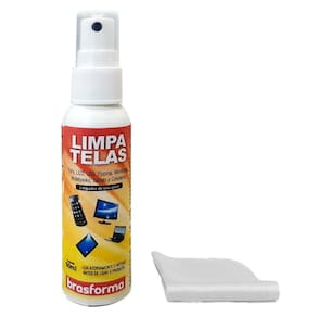 Marca: brasforma Modelo: alt0.2 O kit limpa telas brasforma é ideal para limpeza de tvS, monitores, notebooks, tablets e celulares, além de eliminar qualquer tipo de sujeira, também retira a energia estática que atrai poeira nos equipamentos. Contém spray 60ml e flanela anti risco. Características: Diferenciais: - elimina rápido qualquer tipo de sujeira e mantém limpo por mais tempo - retira a energia estática dos equipamentos que atrai poeira Conteúdo da embalagem: - 1 spray 60ml - 1 flanela Observações: - borrife o produto na flanela e nunca diretamente na tela. Ean: 7896689112614