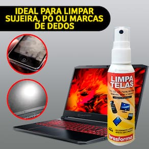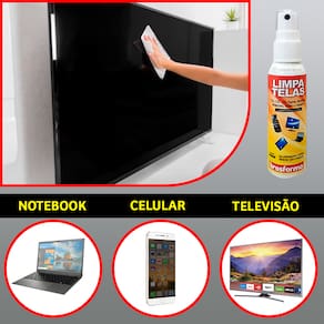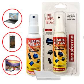 Kit Limpa Telas Com Flanela Antirisco. Ideal para todos os tipos de telas, computadores, TVs, celulares, monitores, tablets e outros modelos que possuem tela LCD, LED e Plasma. -Fácil de utilizar, em formato spray, oferecendo economia e impossibilitando o desperdício do produto no momento que for usado. -Com flanela antirisco, ira lhe proporcionar segurança ao limpar suas telas, evitando arranhões e manchas inconvenientes. -Produto fabricado para remover resíduos de pó, impressões digitais e gordura. Modo de usar: Aplique o produto sobre a flanela antes de passar na tela, com a flanela espalhe uniformemente o produto sobre toda a tela que for limpar, remova o excesso do produto até a secagem completa. Evite o uso excessivo do produto, assim evitando danos internos.