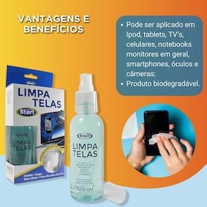 Inclui: limpa telas start 120ml + pano microfibra 22 x 25 cm