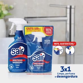 O Kit Limpador Banheiro Saif une eficiência e economia para a higienização completa do ambiente sanitário. Composto por um frasco aplicador de 500ml e um refil, este produto foi desenvolvido para remover resíduos de sabão, gordura corporal e sujeiras comuns do banheiro sem esforço, deixando um aroma agradável e frescor duradouro.