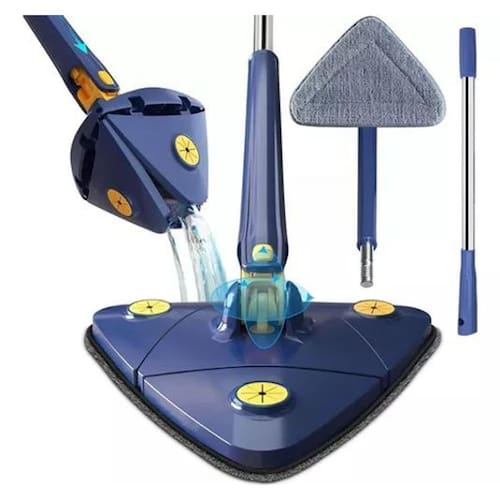 Kit de limpeza 360: esfregão triangular rodo giratório mop + refil Torne a limpeza da sua casa mais fácil e prática com o mop esfregão 360 triangular sua exclusiva cabeça giratória de 360 graus e design triangular revolucionário permitem alcançar todos os cantos, eliminando com facilidade a poeira e sujeira em locais difíceis de acessar.