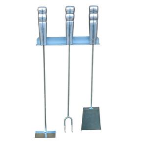 Kit limpeza de churrasqueira com pá e rastelo espalha brasa e garfo churrasqueiro 49 cm.